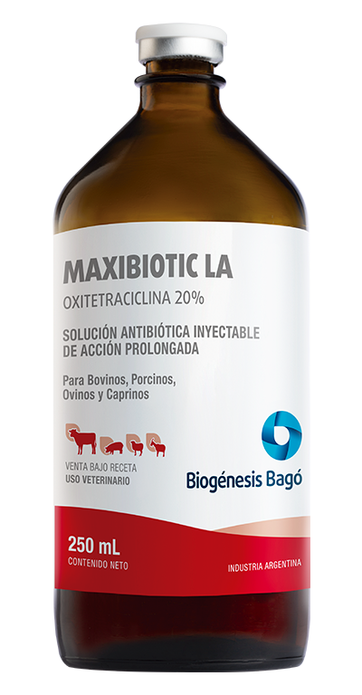 Maxbiotic LA é uma solução antimicrobiana injetável para bovinos. indicado no tratamento de infecções causadas ou associadas a microrganismos gram positivos e gram negativos, sensíveis a oxitetraciclina. Age contra: