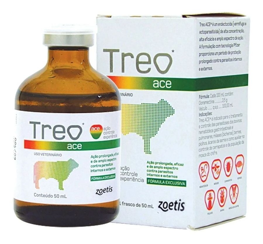Treo® ACE e um endectocida (vermífugo e ectoparasiticida) de alta concentração, alta eficácia e amplo espectro de ação.